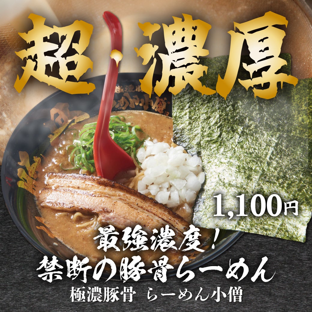 いずれも、多くのお客様に愛されているラーメンステーション定番メニューのため、ぜひ一度ご堪能ください。そして第1弾期間限定ラーメンは、大阪屈指のラーメン激戦区、福島に店を構える【極濃豚骨 らーめん小僧】の「最強濃度!禁断の豚骨らーめん」が登場します。