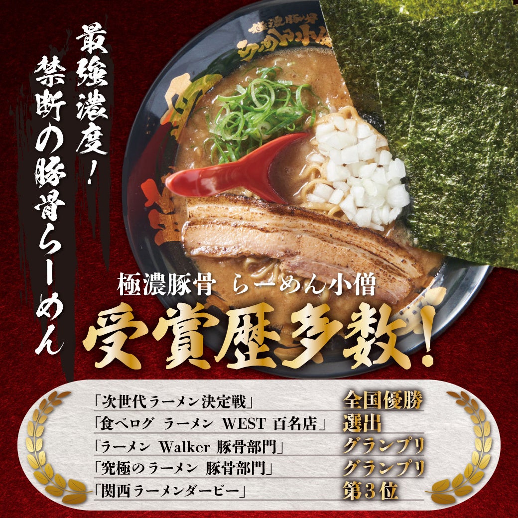 【極濃豚骨 らーめん小僧】は、「食べログ 百名店」選出「次世代ラーメン決定戦」全国優勝「ラーメン Walker 豚骨部門」グランプリ「究極のラーメン 豚骨部門」グランプリ「関西ラーメンダービー」第3位など、数々のグランプリでその名を馳せてきた名店です。