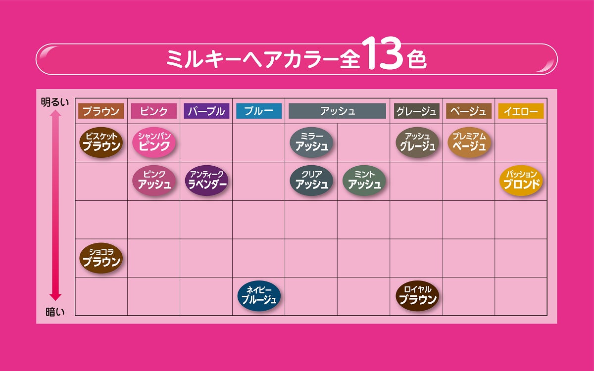 少し明るい色に染めたい方まで幅広くカバーするラインアップ。
