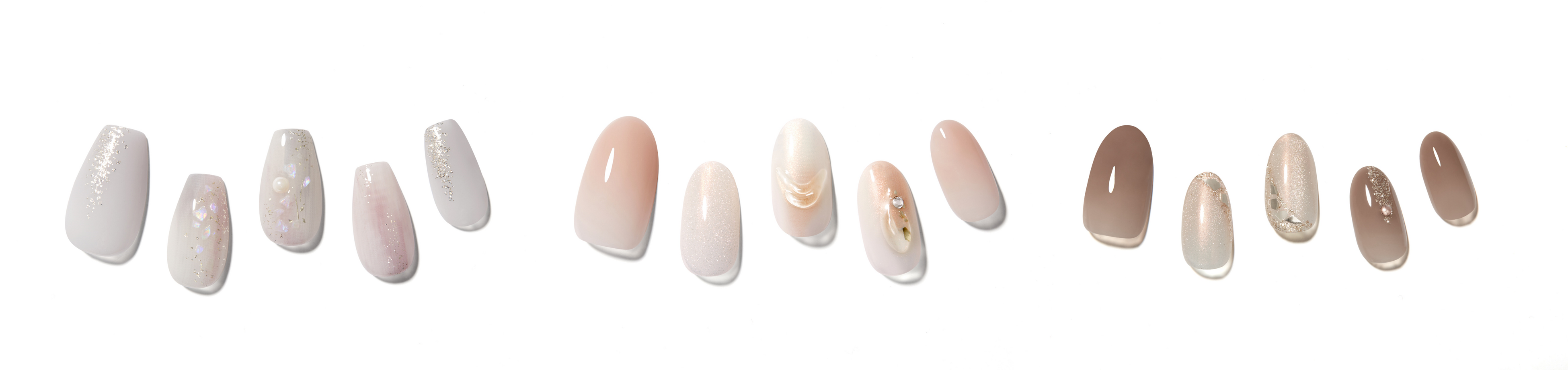 透明感抜群のシロップカラーに定番のマーブル、シェル、オンブレデザインを組み合わせました。