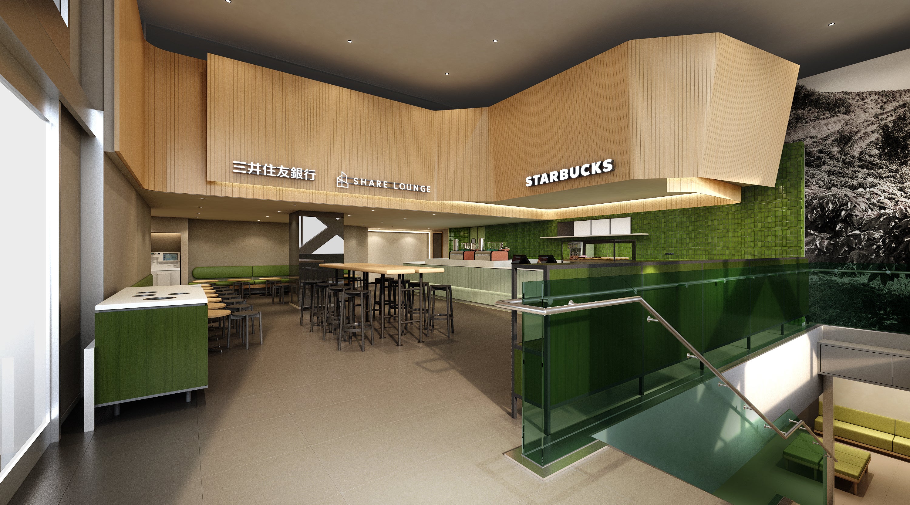 併設のスターバックスやSHARE LOUNGEのご利用料金をOliveフレキシブルペイ(クレジットモード/デビットモード)でスマホタッチ決済すると、決済額の10%相当のVポイントを還元いたします。