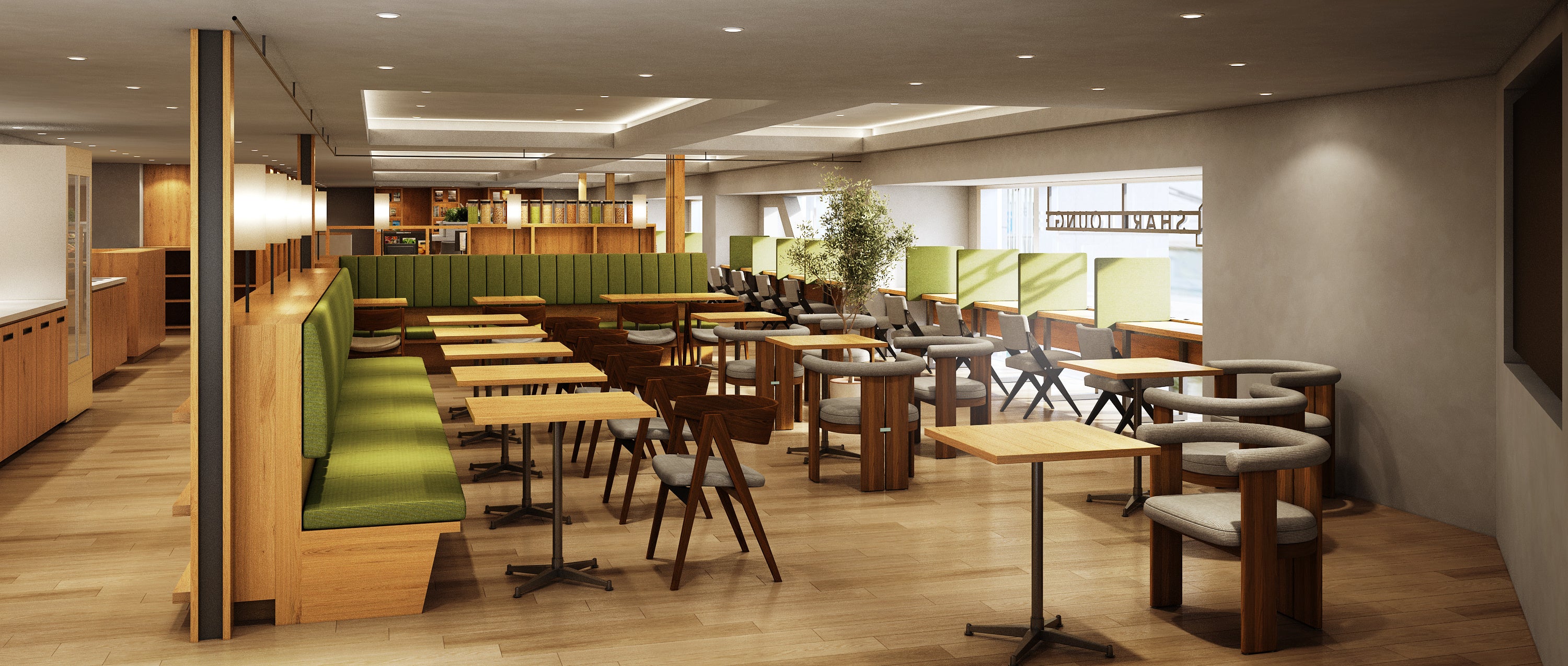 2階と地下1階には、カルチュア・コンビニエンス・クラブ株式会社が運営する「SHARE LOUNGE」が入居し、ビジネスパーソンに快適で機能性の高いオフィススペースを提供いたします。