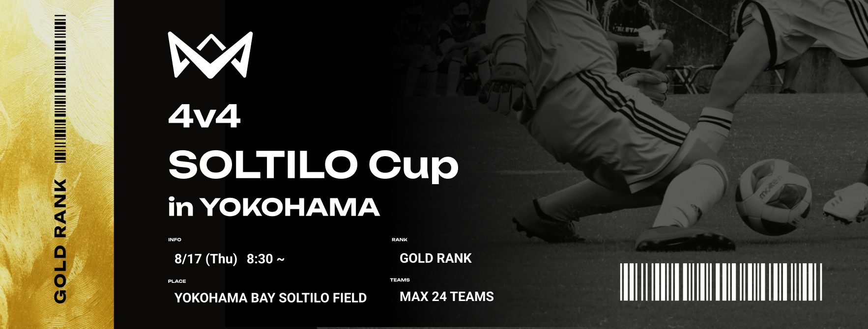 エントリー満枠・8月17日(木)神奈川県・YOKOHAMA BAY SOLTILO FIELDにて、ゴールドランク大会を開催。4v4発起人・本田圭佑が来場決定!