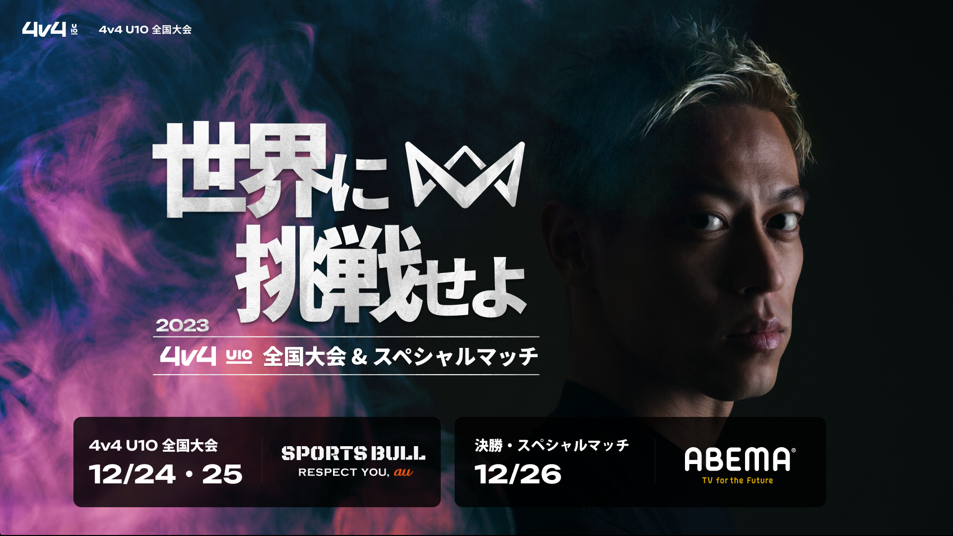 全国大会の出場条件は、全国大会予選ラウンドのゴールドランクの大会で優勝したチーム(16チーム)と、全国でポイントが高い32チームが全国大会に出場できます。全国大会の予選リーグ・決勝トーナメントは2023年12月24日(日)・25日(月)に「SPORTS BULL」で、決勝は2023年12月26日(火)に「ABEMA」で無料ライブ配信されます。また、優勝チームは本田圭佑率いるスペシャルプロチームに挑戦する「スペシャルマッチ」の切符を手にすることができます。またプロサッカー選手同士による4v4の対戦「レジェンドマッチ」を間近で見られるチャンスも。