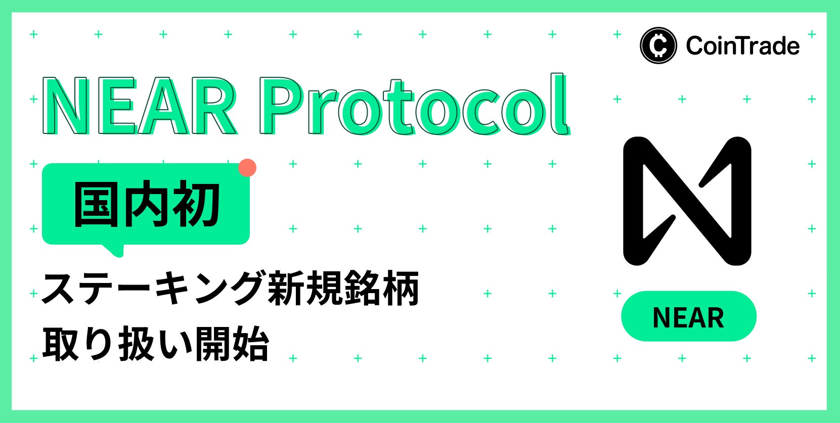 「CoinTrade」及び「CoinTradeStake」において新規暗号資産NEAR Protocol(NEAR)取扱い開始のお知らせ