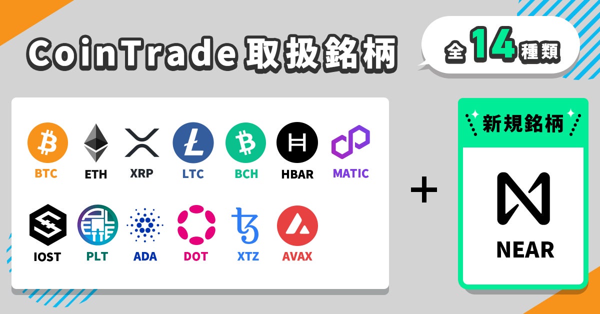 これにより「CoinTrade(コイントレード)」では14種類の暗号資産を取り扱うこととなり、「CoinTradeStake(コイントレードステーク)」では8種類の暗号資産のステーキングが可能となります。