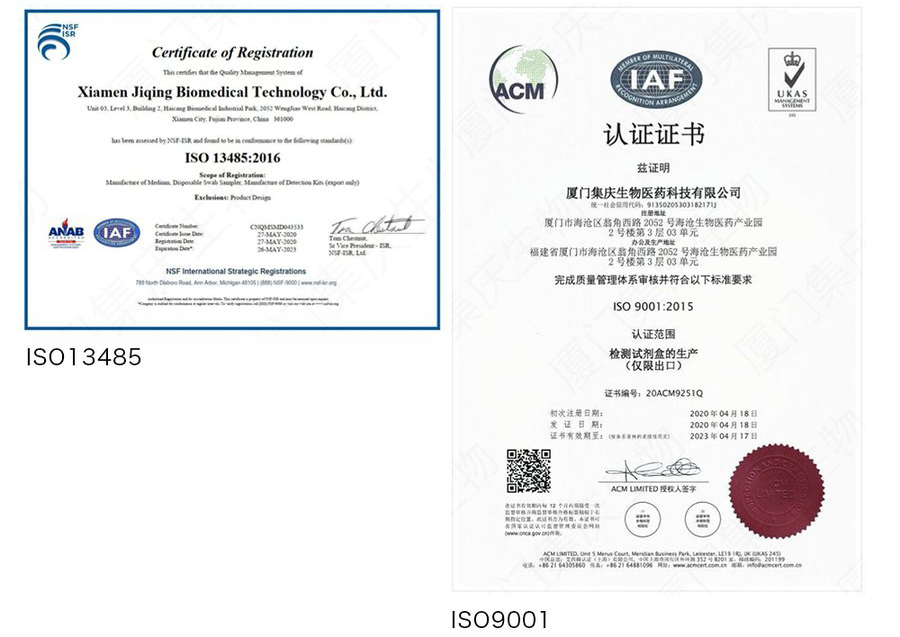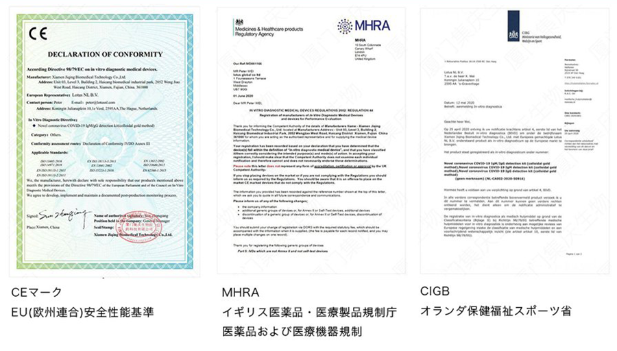 ・日本において本製品は体外診断用医薬品、医療機器に属するものではなく研究用製品となりますが、キット内テストデバイスはヨーロッパにおける医療機器としての認証であるCEマークを取得しています。