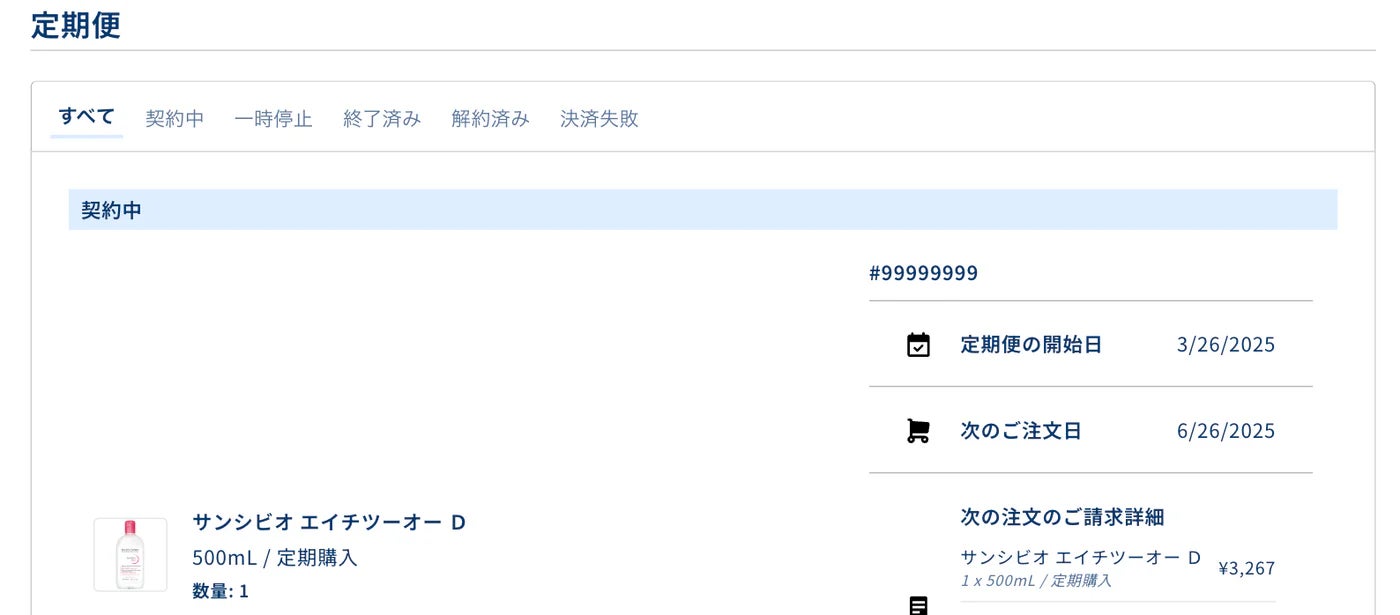 最低購入回数を設定しているため、3回目の注文が完了するまではキャンセルはできません。