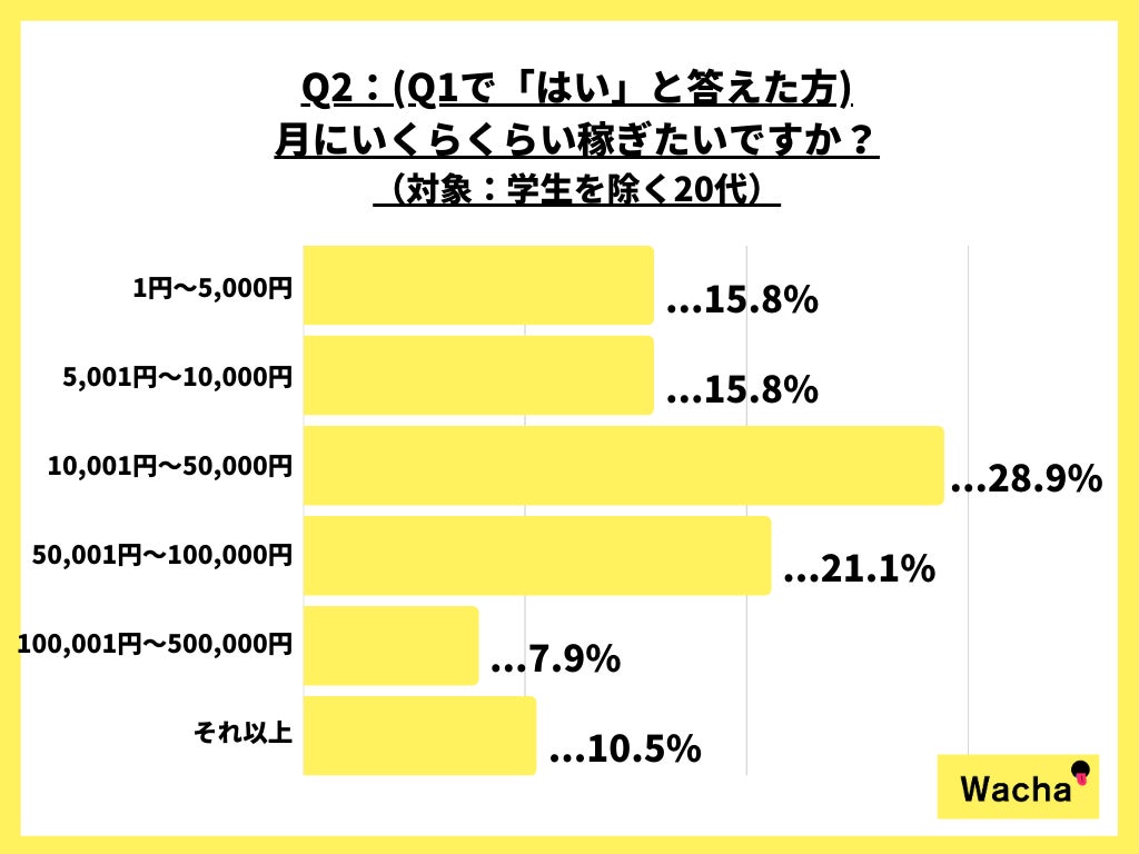▼画像:Q2:(Q1ではいと答えた方)月にいくらくらい稼ぎたいですか?(対象:学生を除く20代)