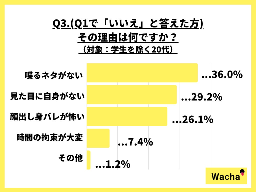 【Wacha調査リリース】働く20代の約80%がライブ配信に抵抗を感じると回答。主な理由はトークスキルと外見。
