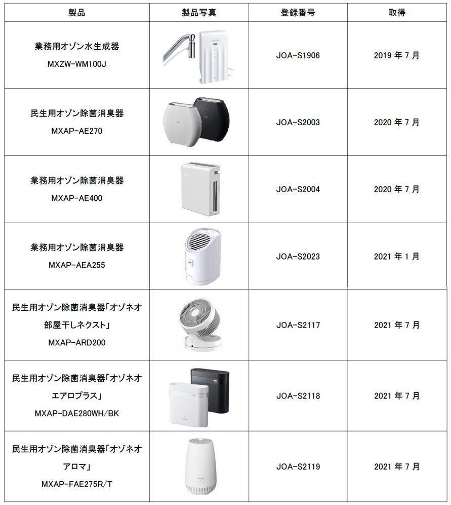 マクセル株式会社(以下、マクセル)は、オゾンを使用した2製品において、このたび特定非営利活動法人 日本オゾン協会(以下、日本オゾン協会)の小型オゾン発生装置型式認定を取得しました。