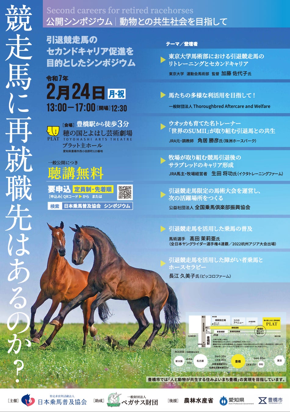 日本最大規模「引退競走馬のセカンドキャリア促進を目的としたシンポジウム」開催決定のお知らせ