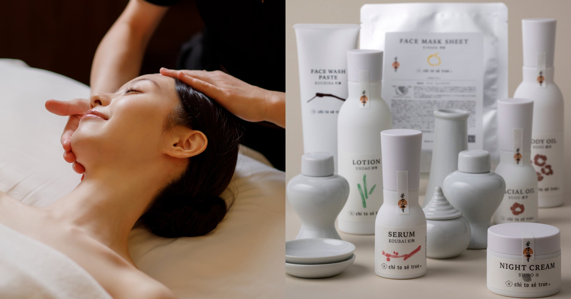 chi to sé trueのフェイシャルトリートメントは、日本を感じられるリチュアルやトリートメント技術をはじめ、日本古来の美容成分を用いて本物の日本文化に触れられます。スパエクスペリエンスを通してご自身を整えた後、ご自宅でも丁寧にケアすることで、よりご自身が満たされていく感覚をご実感ください。