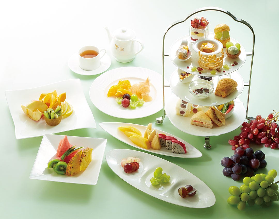ぶどうの最盛期。9 月のタカノフルーツティアラ(アフタヌーンティーセット+季節のカットフルーツ食べ放題)は、ぶどうのカットフルーツ食べ放題。産地を選んで食べ頃のぶどうを毎日ご提供いたします。