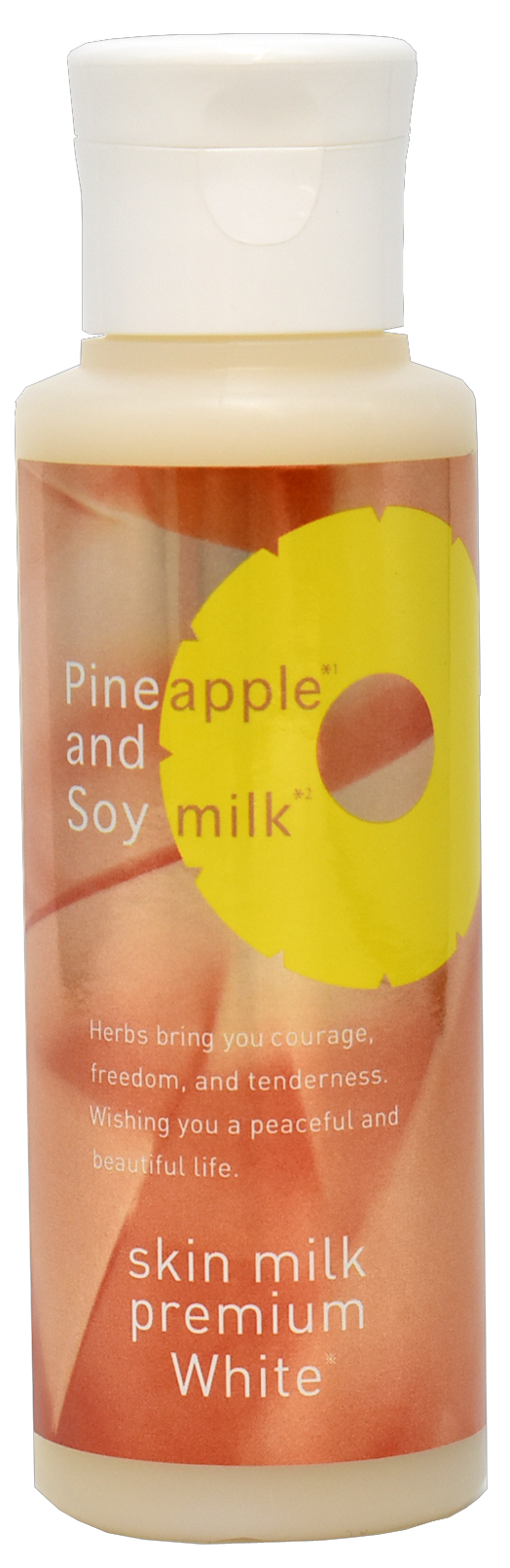 また、新商品「薬用 パイナップル豆乳スキンミルクプレミアム美白」は医薬部外品です。2つの有効成分トラネキサム酸とグリチルリチン酸ジカリウムに加え、ヒメフウロエキス・ビルベリー葉エキス・アルピニアカツマダイ種子エキス・タイムエキス・プルーン酵素分解物・キウイなどハーブエキスがシミ沈着プロセスに多角的にアプローチします。