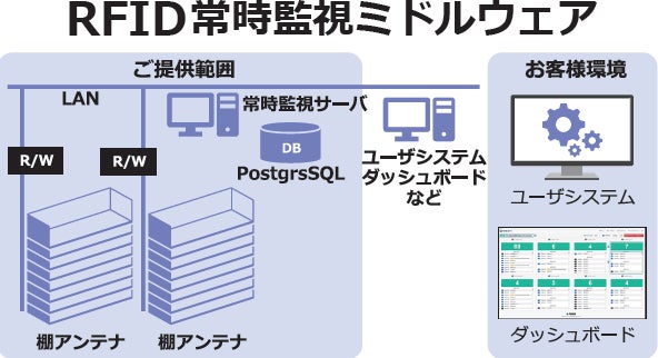 新規開発したRFID機器は、自律型のためHF帯・UHF帯ともに制御用PCやソフト開発が不要ため、インターネットに接続ができる環境があれば、置くだけでICタグのデータをクラウドに送信しデータ収集ができます。収集したデータはダッシュボード機能で可視化し「作業実績の見える化」も可能です。また他のBIツールとの連携により「ロケーションみえる化」等も構築可能です。ぜひ、デモをご覧頂いて、お客様のご意見をお聞かせください。