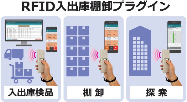 ゲート型RFIDリーダライタとパッケージソフト「入出庫棚卸プラグイン」を組み合わせることで、ゲートを通過するだけの入出庫一括検品を実現します。オプションの「シンプル在庫機能」を使用すれば在庫数の把握も可能です。