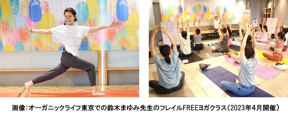 また、本インスタライブレッスンのインストラクター鈴木まゆみ先生には、オーガニックライフ東京(2023年 4月開催)等のイベントクラスにて、一般参加者へフレイルFREEヨガを直接指導していただきました。