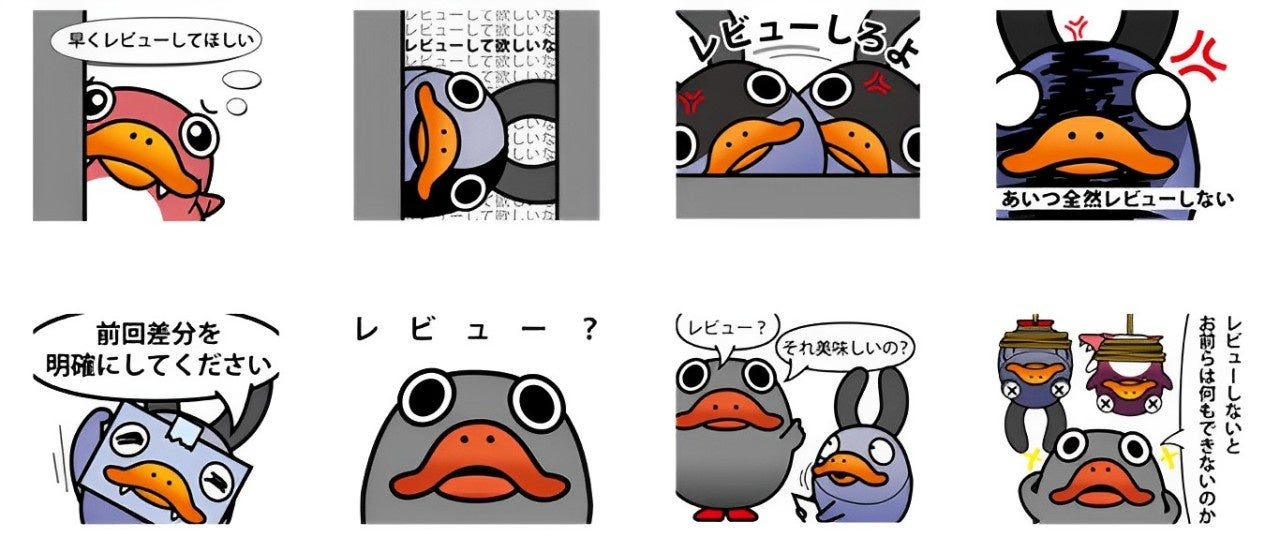「早くレビューして欲しい」「レビュー指摘事項0件で」「これ本当にセルフレビューしたの?」「前回差分を明確にしてください」「セルフレビューした割には…」など、現場でよく耳にするフレーズを使ったスタンプを24種類ラインナップしました。