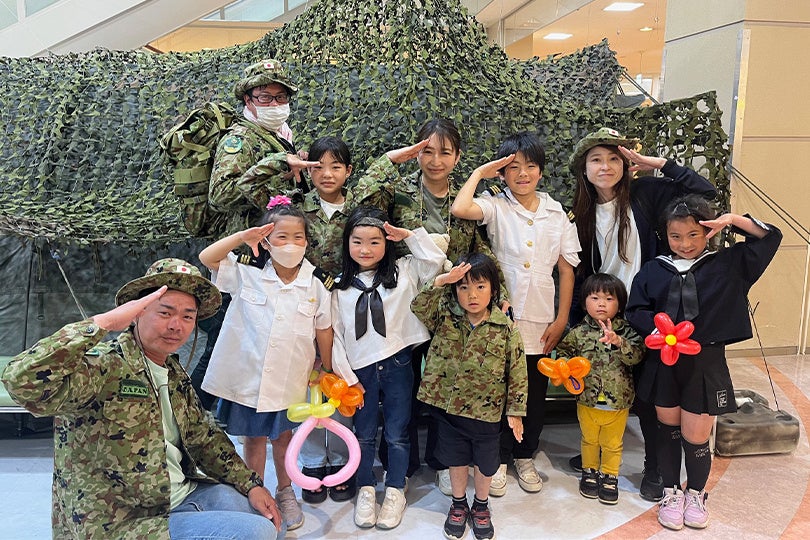 自衛隊の迷彩服を着て、撮影できるブースも登場!