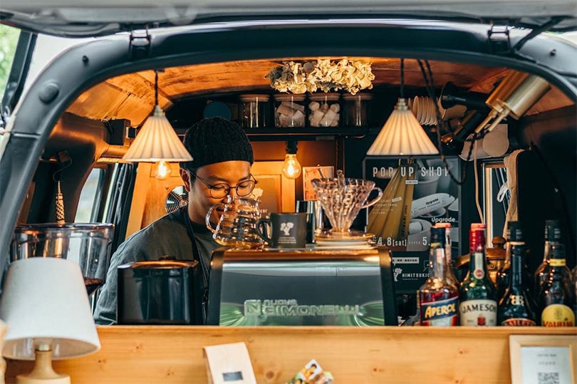 出来立てのブルーベリーソースやコーヒーショップのキッチンカーなどイバライド園内が賑わいます。
