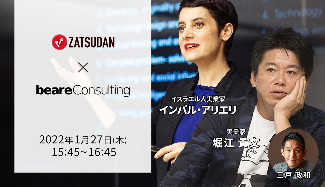 株式会社ZATSUDANは、2022年1⽉27⽇(木)にベアーレ・コンサルティング株式会社と共同で、ゲストを迎えた豪華対談イベントを開催します。