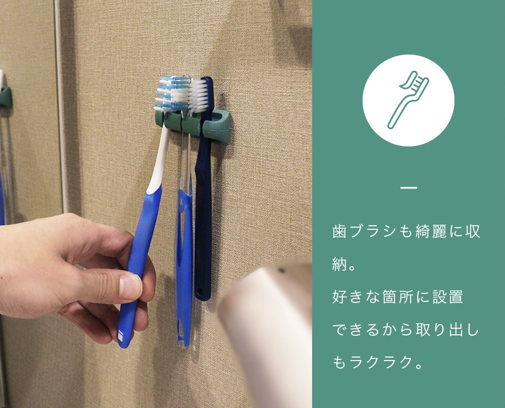 ケーブルを固定したいところは使う場所に寄って異なるため、自分の好きな机や壁など好きな場所に貼り付けて使えるようにしました。跡が残らない3M社製の両面テープを採用しているので気軽に使うことができます。またデスクやオフィスに限らずどこでも使えるので、車の中や洗面台など様々な場所でご使用いただけます。