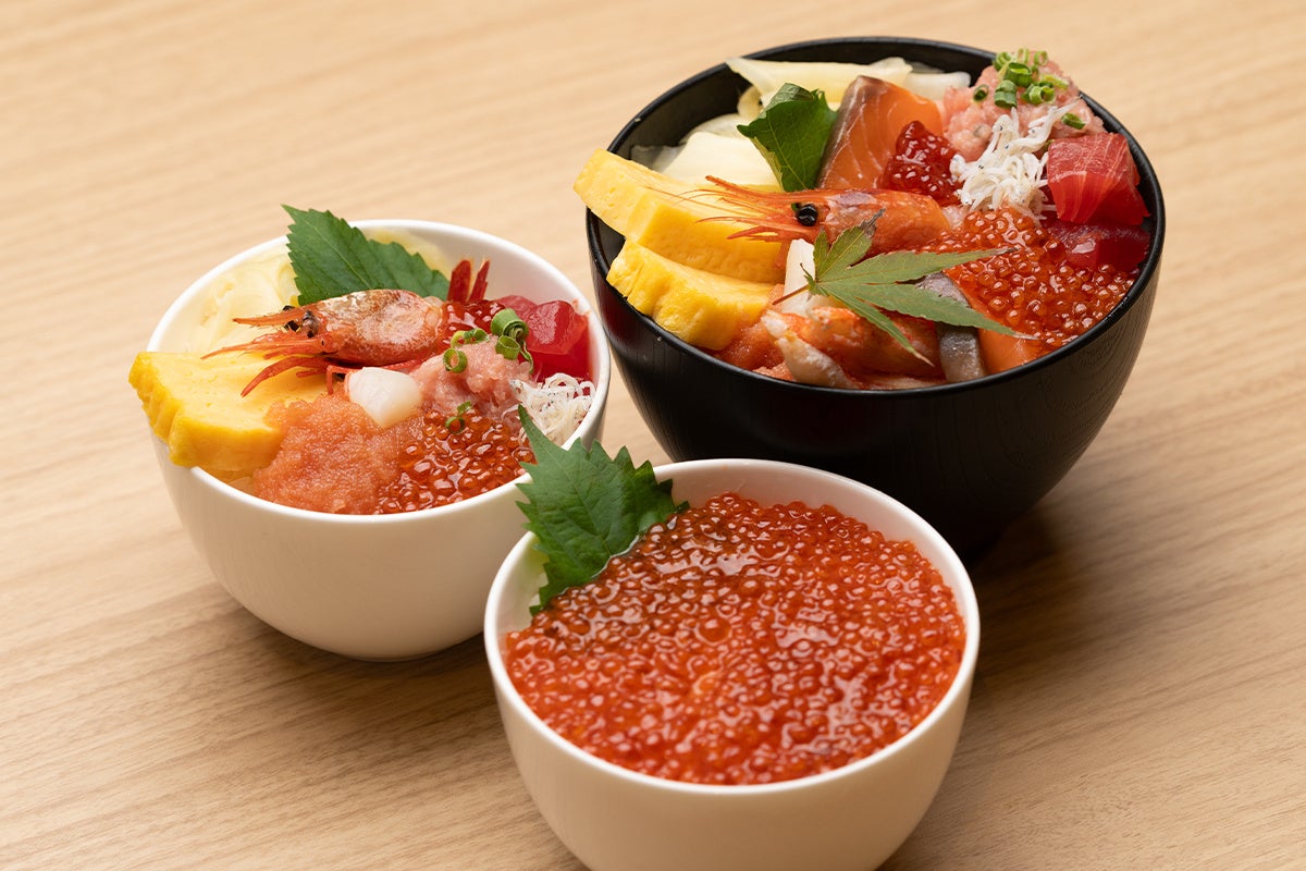 ホテルエノエ函館の朝食は、北海道の新鮮な食材をふんだんに使用した種類豊富なメニューが魅力です。ライブキッチンでは、函館名物のイカを使用したイカ墨オムレツや、豚丼など、シェフが目の前で調理する出来たてのお料理をご提供いたします。函館ならではの新鮮な海の幸を使った海鮮丼や手巻き寿司は、とれたてのマグロ、サーモン、エビ、いくらなどバラエティ豊かなネタをご用意。丸ごとチキンのトマトスープカレーや、ローストビーフのお寿司、こだわりのパンなどENOE特製の自慢のお料理もお楽しみいただけます。函館の朝を彩る朝食ブッフェを心ゆくまでご堪能ください。
