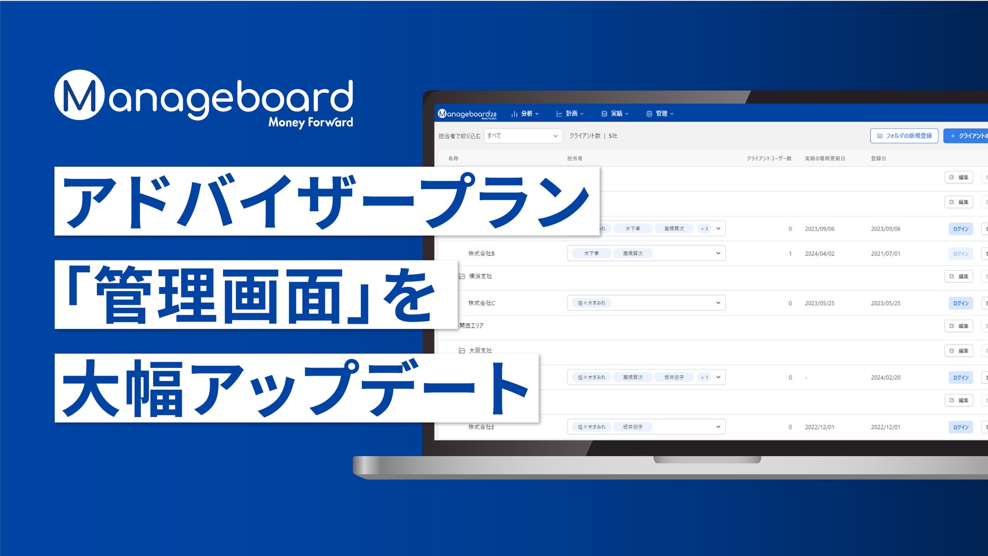 管理会計プラットフォーム 『Manageboard』、「アドバイザープラン」管理画面を大幅アップデート