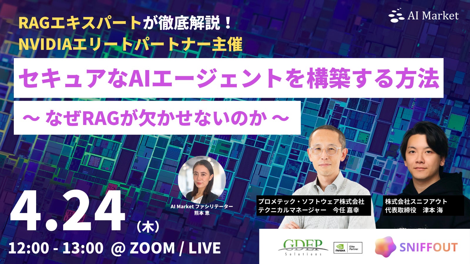 AI Market(https://ai-market.jp)は、2025年4月24日、セキュアなAIエージェントを構築する方法 ~ なぜRAGが欠かせないのか ~と題したウェビナーを開催します。