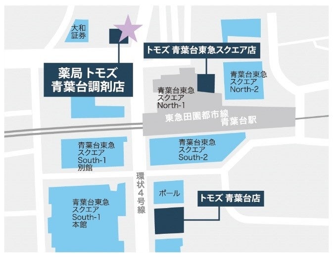 なお、近隣にトモズ青葉台店、トモズ青葉台東急スクエア店がございますので、化粧品や日用品などをお求めの方は併せて ご利用ください。