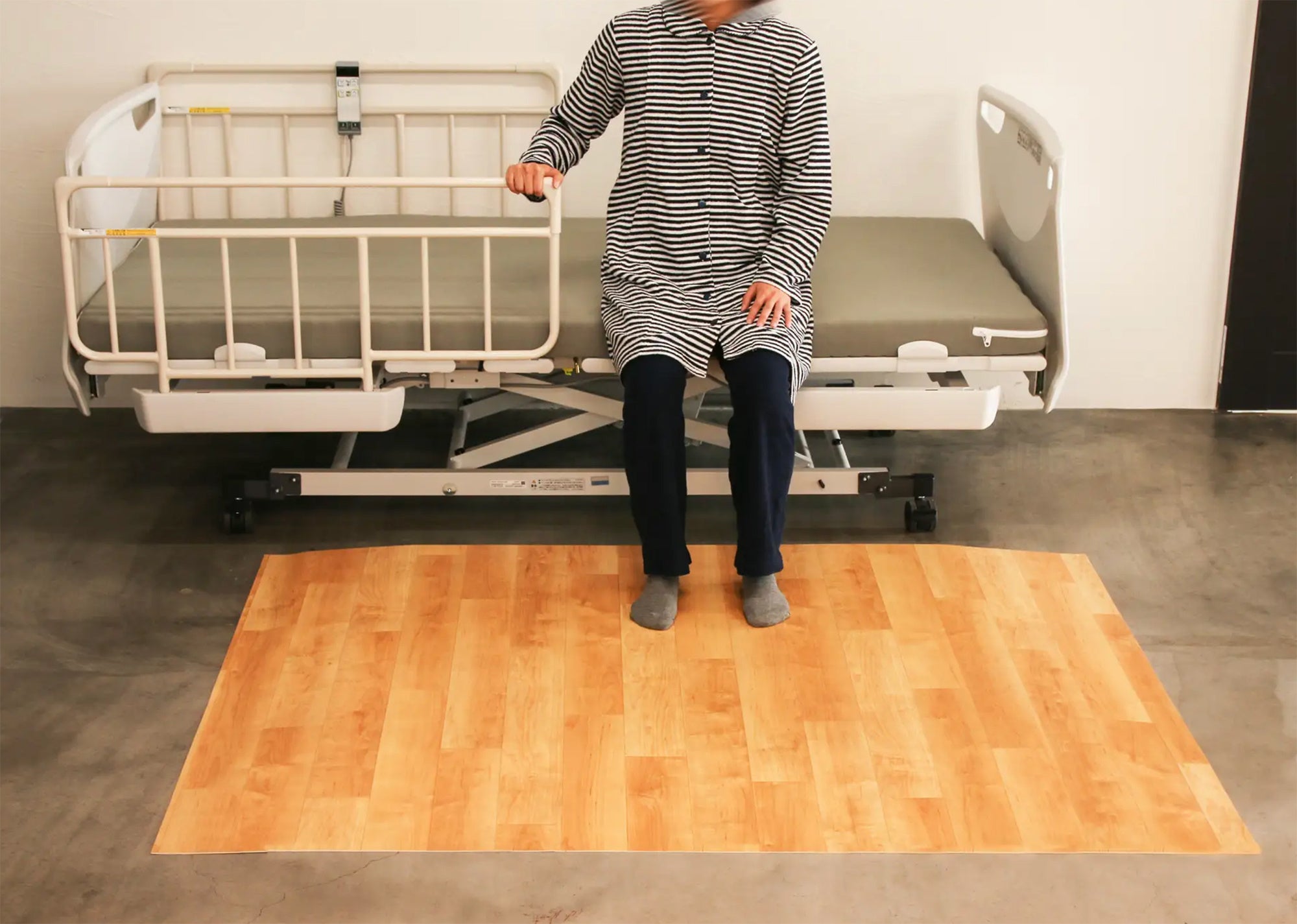 「ころやわ」は、これまで困難とされていた「歩行安定性」と「衝撃吸収性」の両立を、世界※1で初めて実現しました。転んだ時は床面が凹み、転倒骨折リスクを軽減しますが、普段は硬く凹まないため、車いすや杖、電動ベッド※2も使用でき、歩いているときは転びにくいのが特徴です。医療・福祉施設向けに2021年8月に発売を開始し、これまで広く医療・福祉施設に評価されています。導入施設数も560箇所以上※3に増え、国立病院や病床数1,000床以上※3の病院にも多く採用されています。