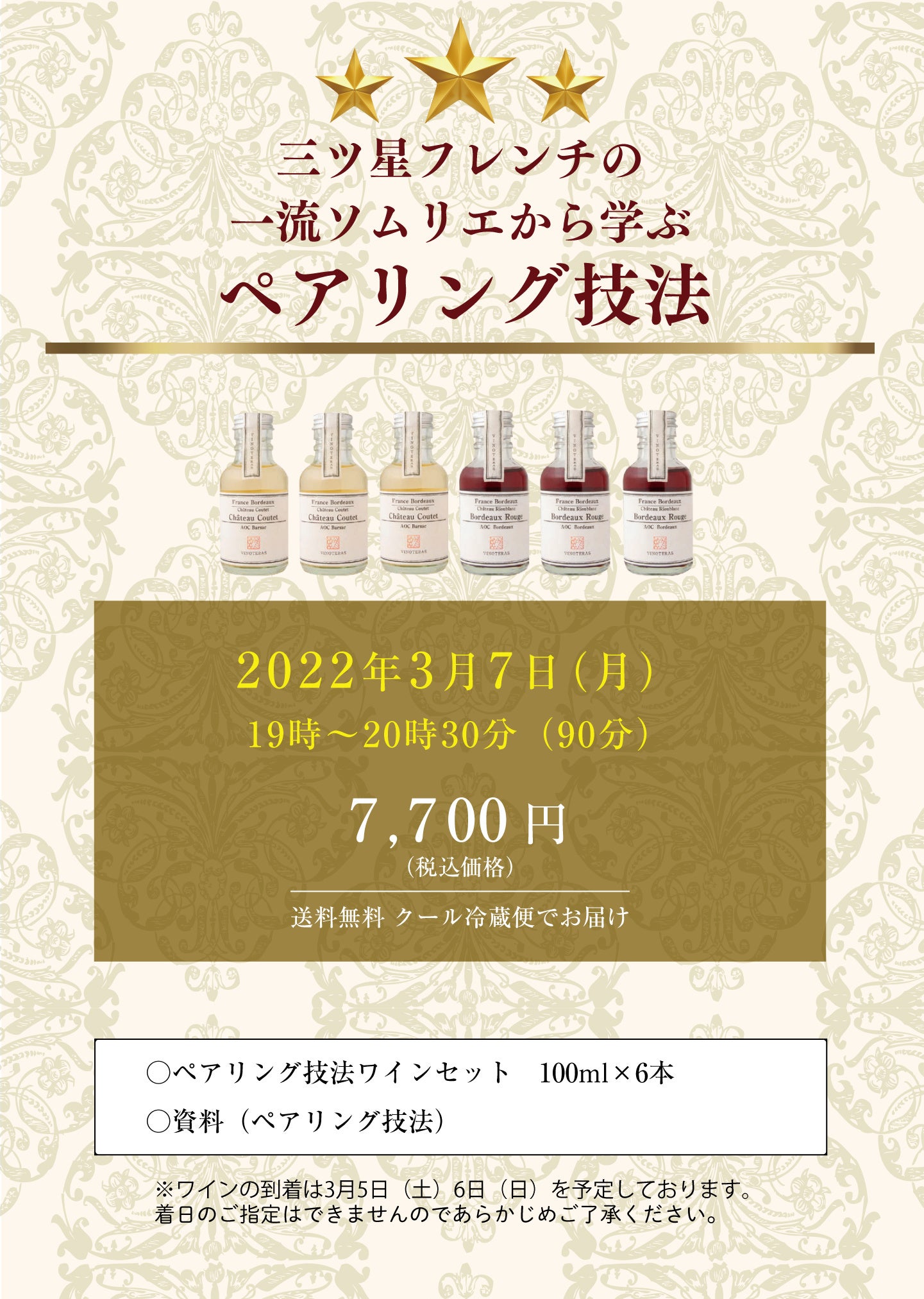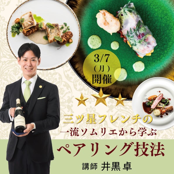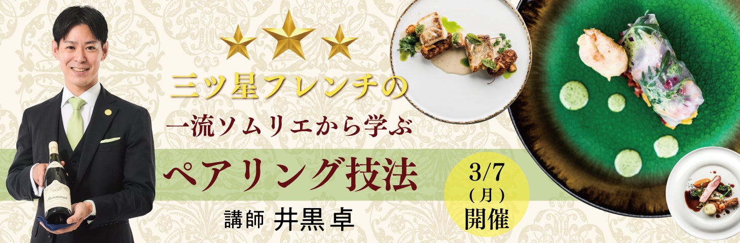 三ツ星フレンチレストランの一流ソムリエが直接解説!完全オンライン・全国どこからでも参加可能な【ペアリング技法講座】3月7日(月)開催