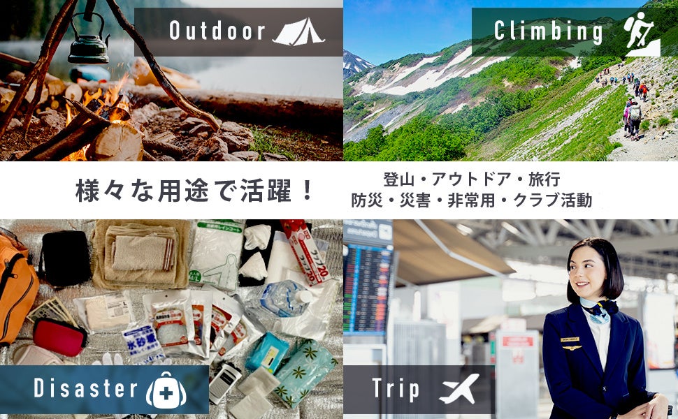 アウトドアはもちろん、複数人でのレジャーや非常用グッズの持ち出しにも活躍!
