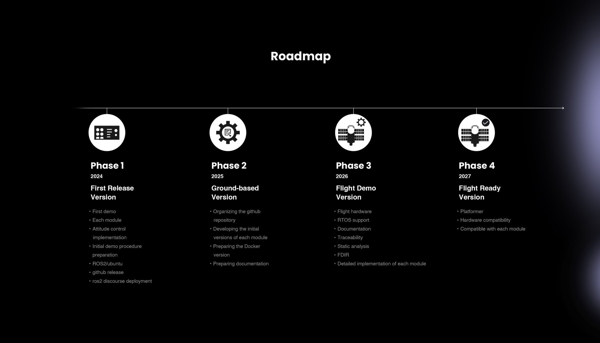 宇宙ステーションの開発は、ROSが普及する以前のロボット産業と類似した状況にあります。現在は限られた専門家が独自に開発を進めていますが、「Space Station OS」により、技術や知識の民主化が進み、世界規模での宇宙ステーションの共同開発が実現すると考えています。