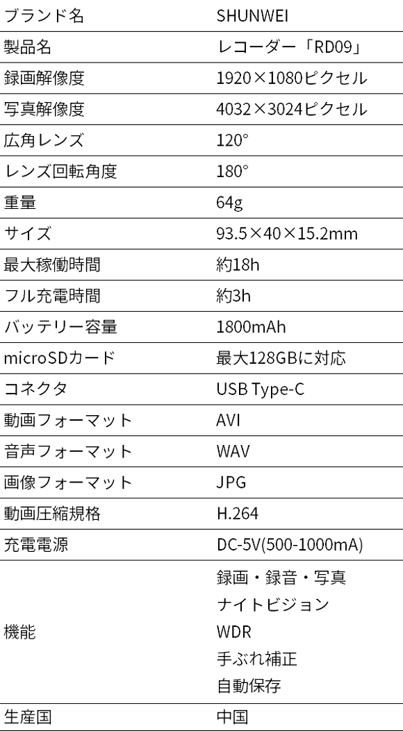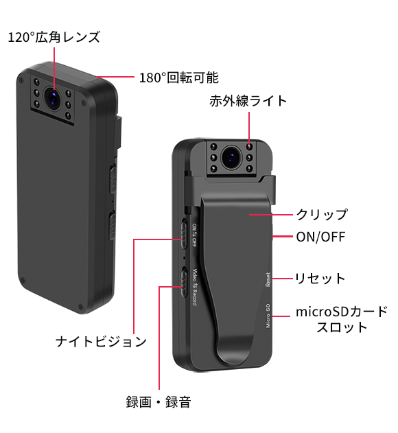 ナイトビジョン搭載!18時間連続録画&録音可能!わずか64gのクリップ式マルチ機能レコーダー「RD09」