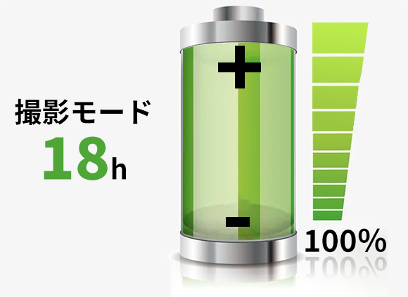 ・ホームセキュリティ:18時間稼働可能で長時間定点録画に活用できます。自宅の窓際やテーブル、ドアなどに置くだけで防犯カメラとしても大活躍。