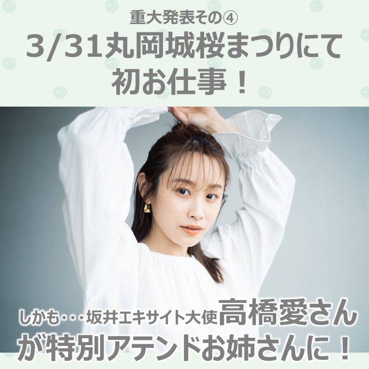 「丸岡城桜まつり」で初めてのお仕事をします。坂井エキサイト大使の高橋愛さんが、特別にアテンドを行います。