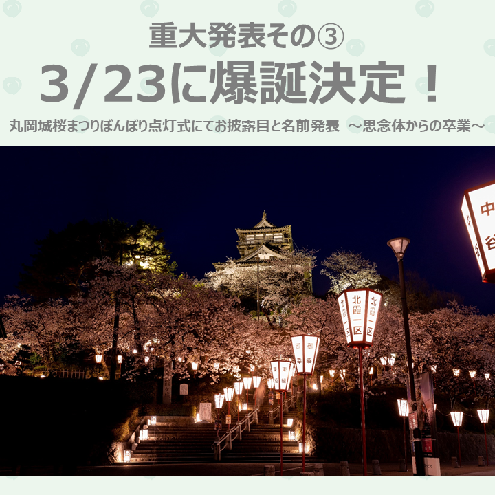 「丸岡城桜まつり ぼんぼり点灯式」にてお披露目し、名前も発表します。