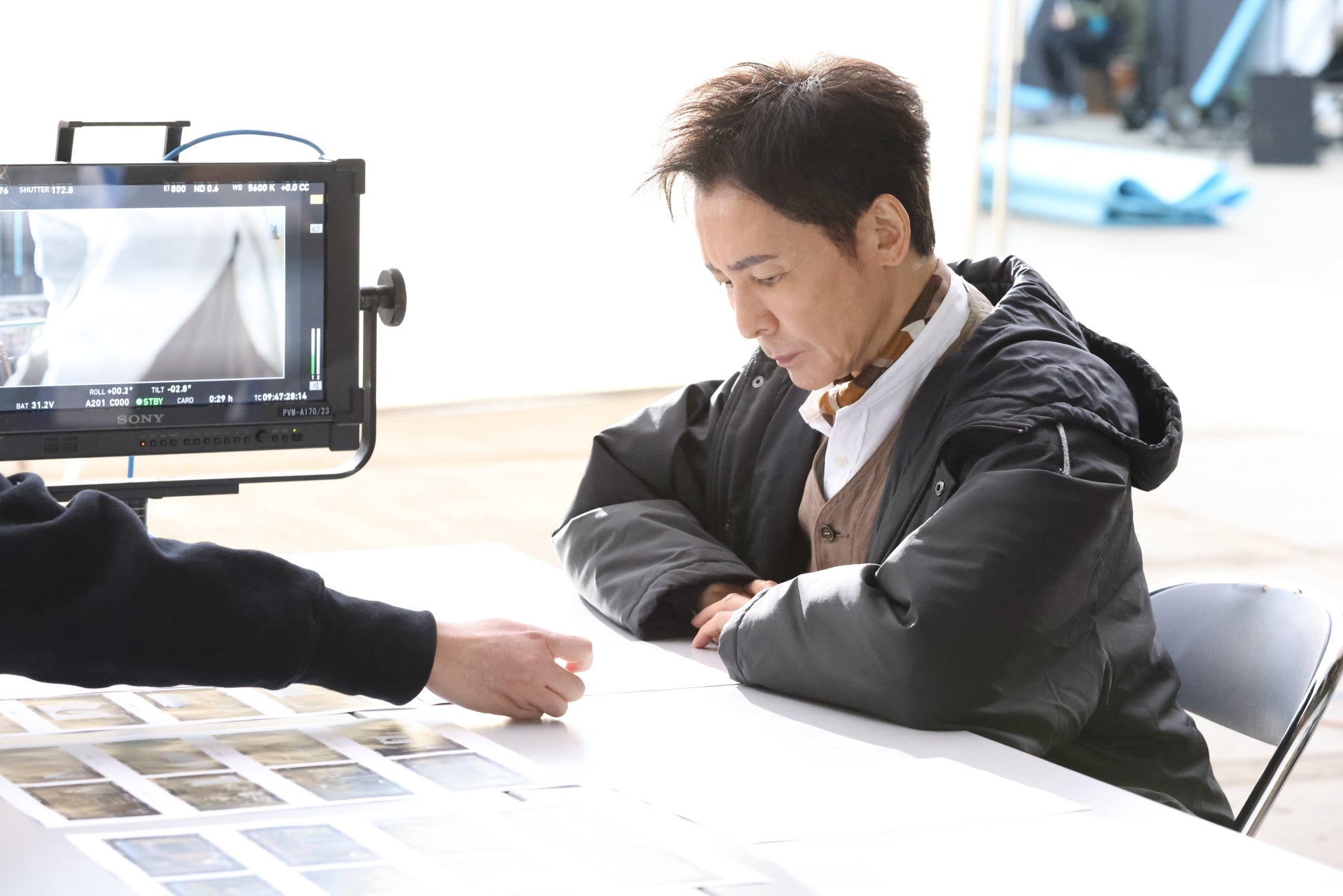 【内 容】 イ・ボミさんの正面に座り、真剣な面持ちで絵を描く似顔絵アーティスト役の郷さん。
