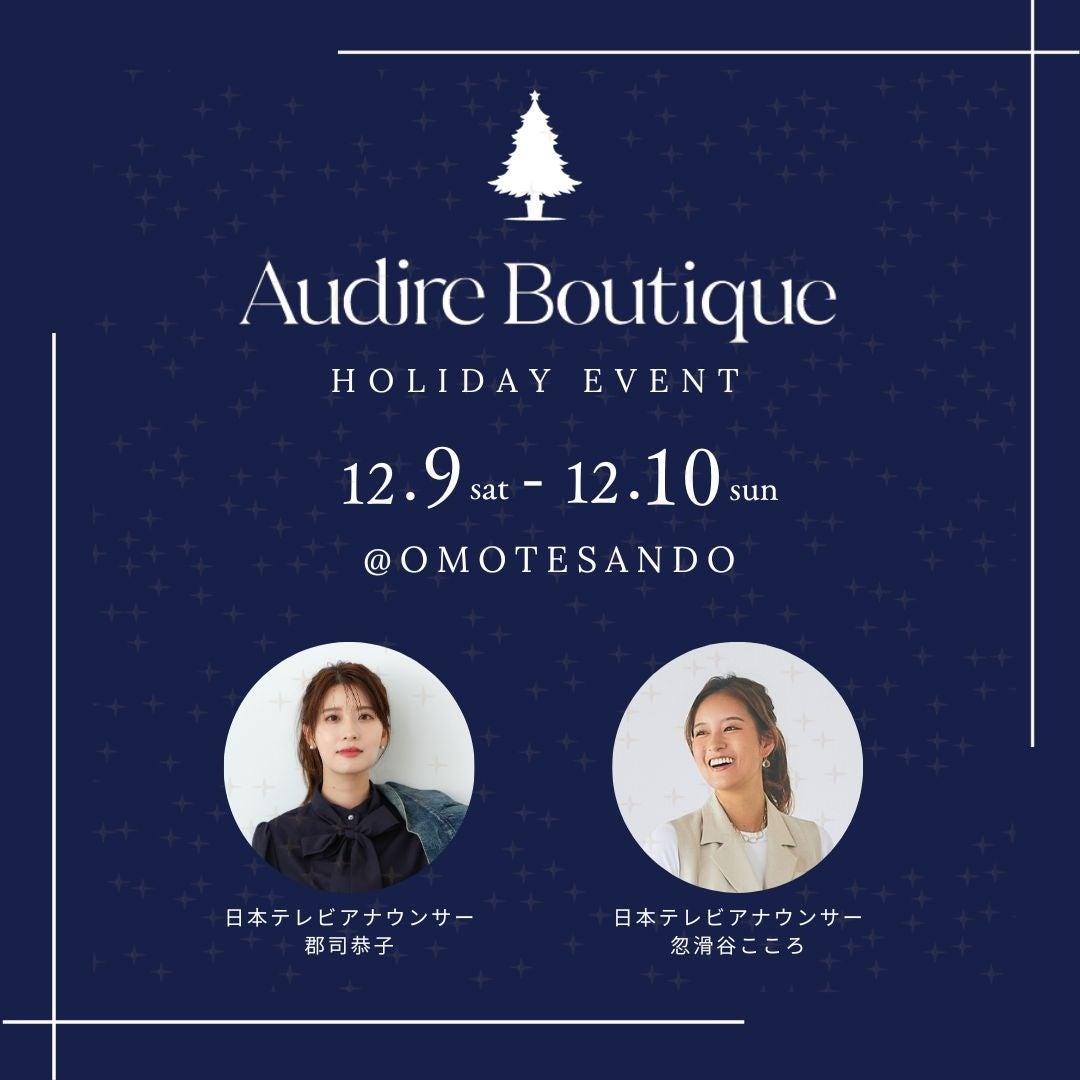 日本テレビアナウンサーの声から生まれたAudire(アウディーレ/https://audire.jp/)は、2023年12月9日(土)〜12月10日(日)の2日間、東京・表参道にて試着・オーダーができる完全招待制イベント「Audire Boutique」を開催いたします。