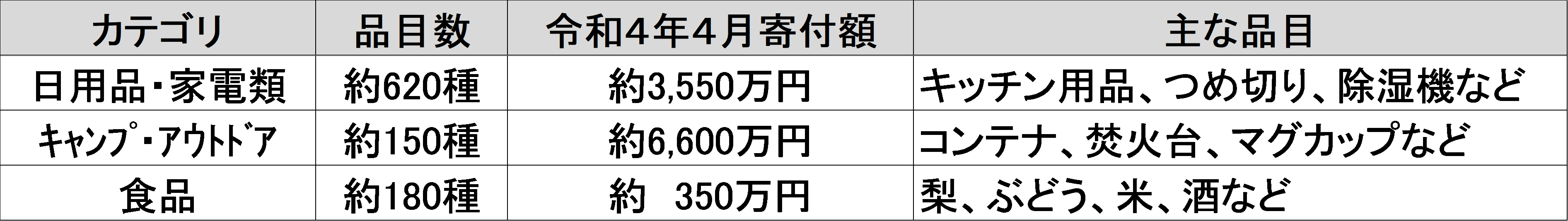 ●「ものづくり」や「自然が育む食」といった、当市の金属加工技術や自然の豊かさを反映した多岐にわたる返礼品が増えたことによる影響(令和3年4月約520種⇒令和4年度4月約950種)