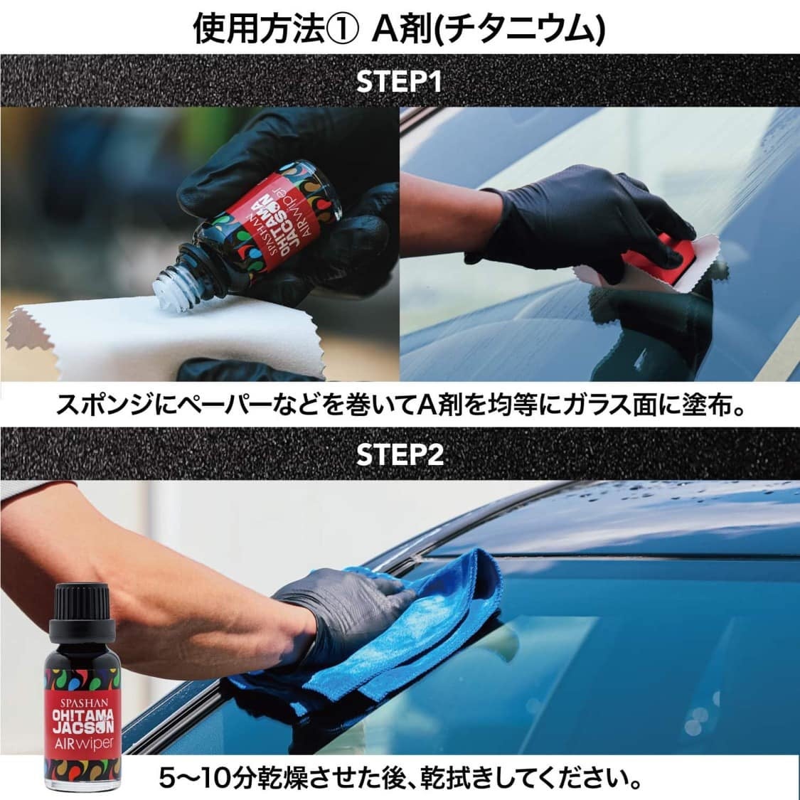 STEP.3 スポンジにオタマジャクソンエアワイパーの溶剤:B剤(フッ素)を塗布します。
