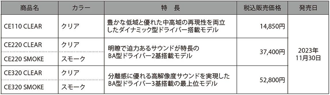CE Seriesは、12月9日(土)10日(日)に開催される「ポタフェス2023冬 秋葉原」にてご試聴いただけます。ぜひ、実際のサウンドと装着感をご体験ください。