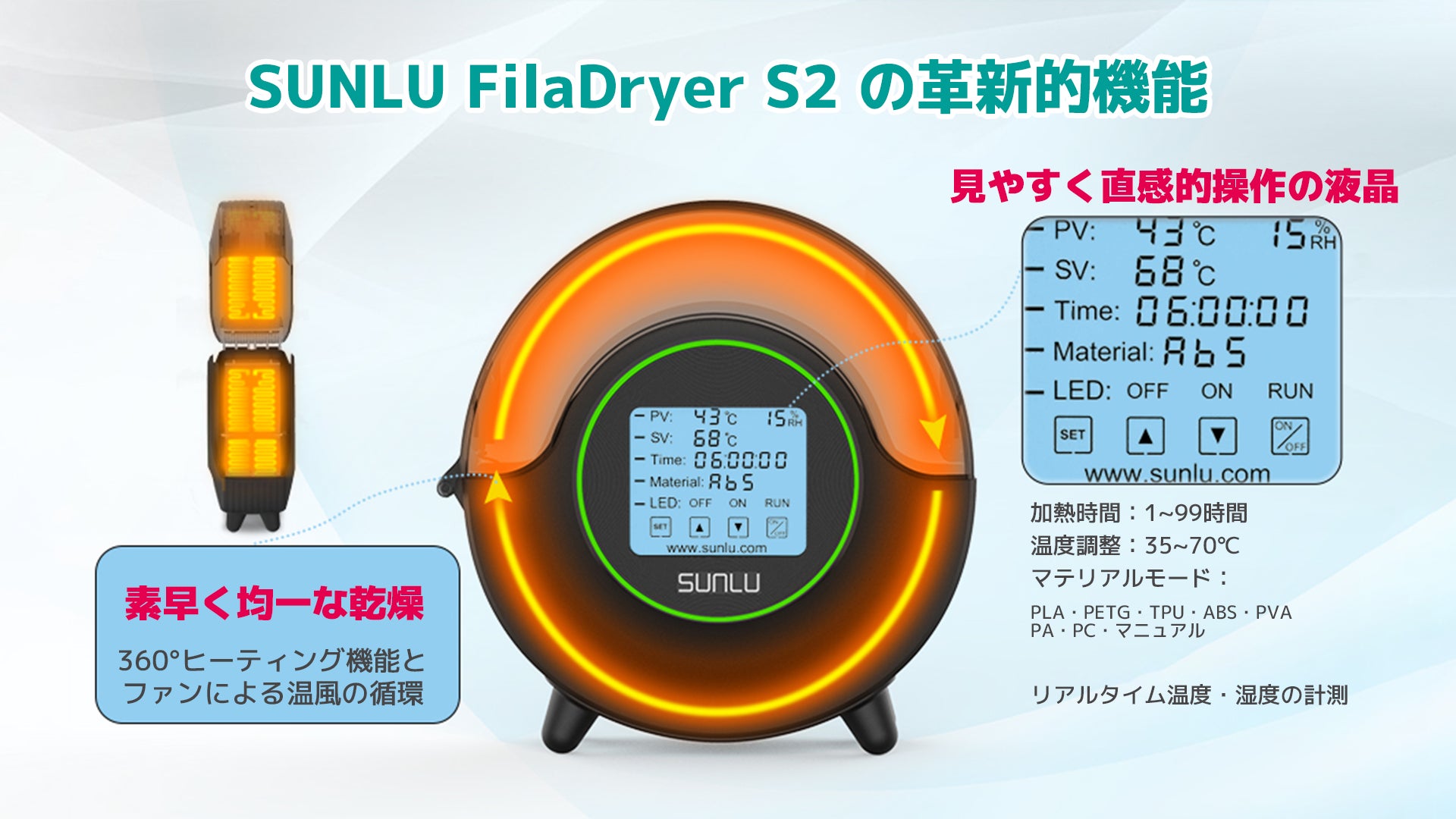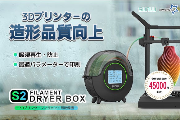 世界累計45000台以上出荷。世界中の3Dプリントユーザーから大きな注目を集める3Dプリンター用フィラメント乾燥機「SUNLU FilaDryer S2」が遂に日本上陸!