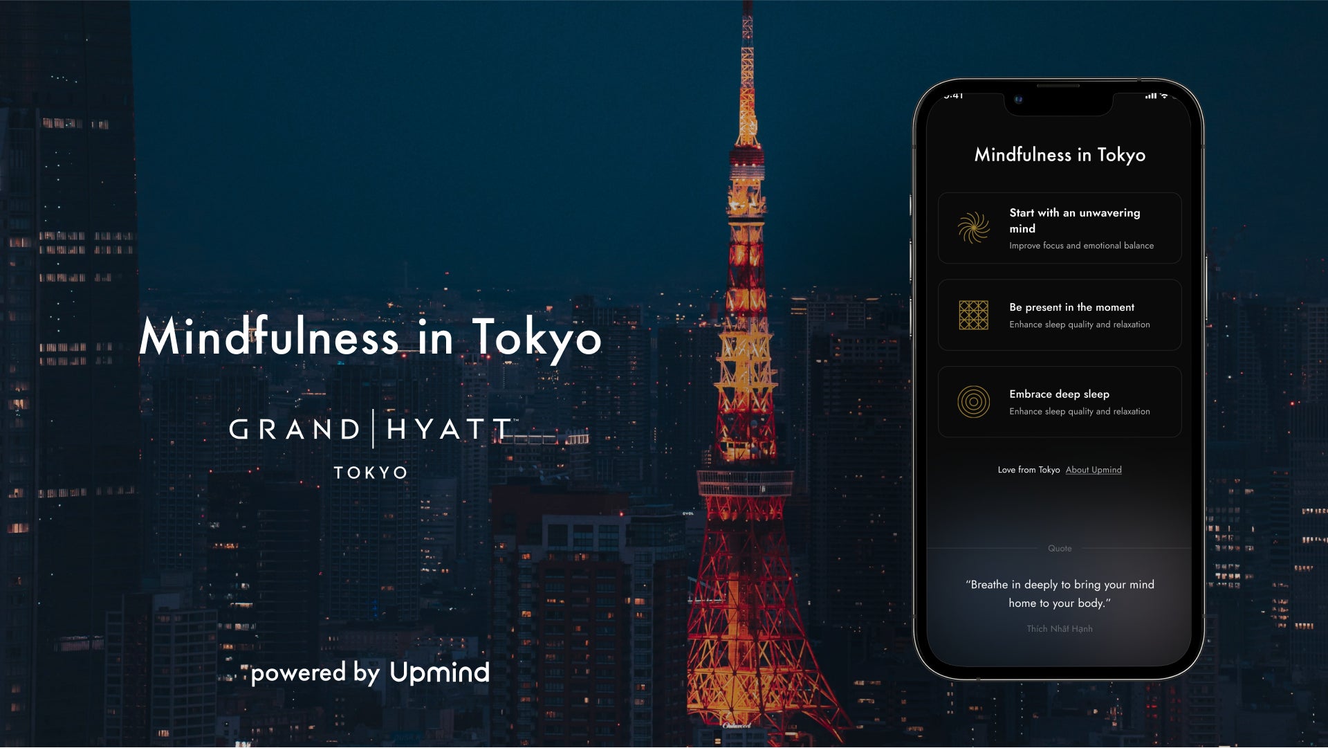 実証実験での効果を踏まえ、グランド ハイアット 東京のご宿泊のお客様に、特別なウェルネス体験をご提供するため、オリジナルのマインドフルネスアプリ「Mindfulness in Tokyo(読み:マインドフルネス イン トウキョウ)」を日英の言語で開発し、25年2月1日より提供を開始しております。