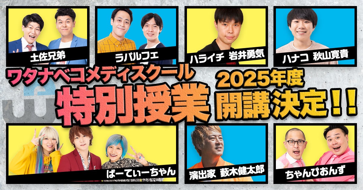 そしてこの度、2025年4月に入学したワタナベコメディスクール生(※1)に向けて、第一線で活躍する講師陣の講義に加え、より実践的な授業としてワタナベエンターテインメント所属芸人によるタレント授業を開校することが決定いたしました。
