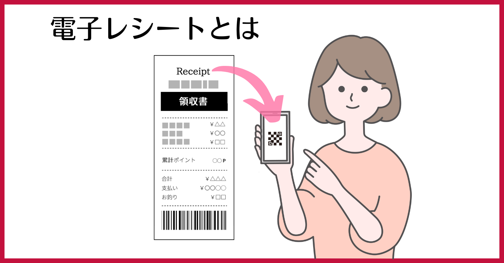 スマホアプリなどを通じて電子的にレシートを発行する仕組みであり、アプリ上で管理・確認ができます。店舗でのレシート配布が不要になるペーパーレスのサービスであり、政府が推進するキャッシュレス施策の1つでもあります。