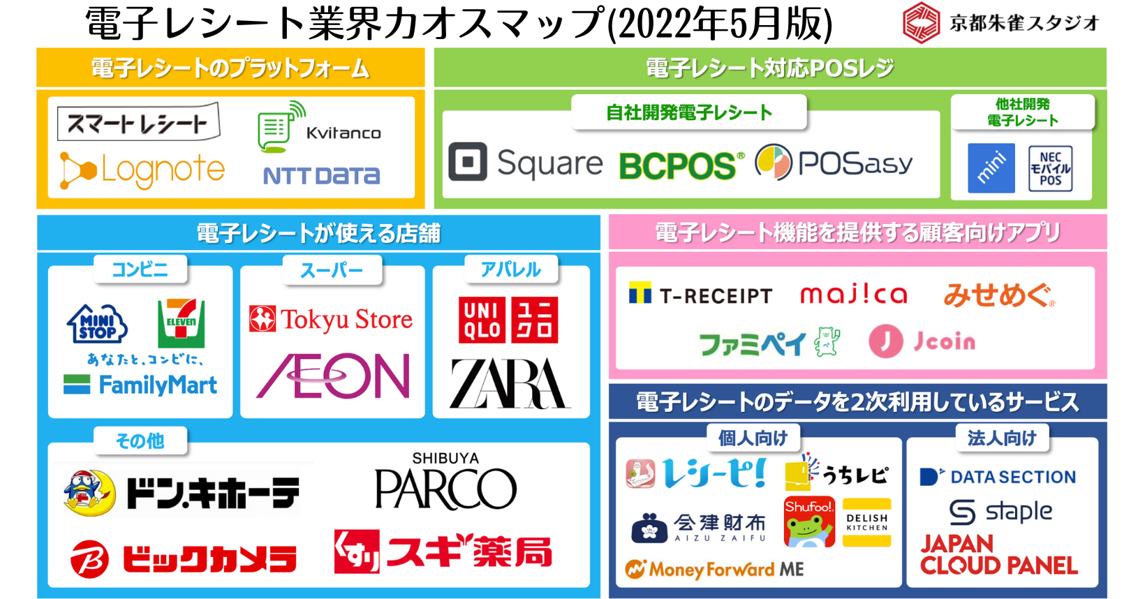 電子レシート業界カオスマップ(2022年5月版)を公開【京都朱雀スタジオ】
