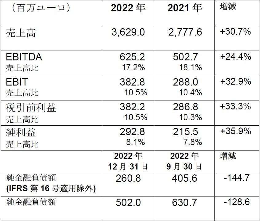 ブレンボグループ 2022年度 連結業績(IFRS基準)